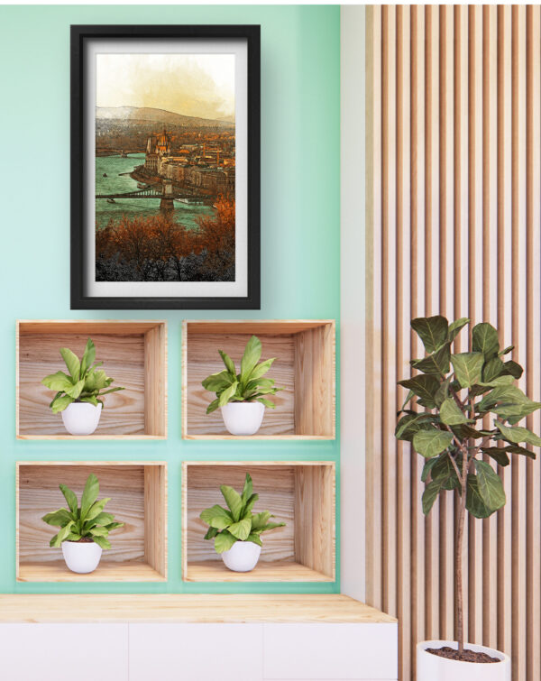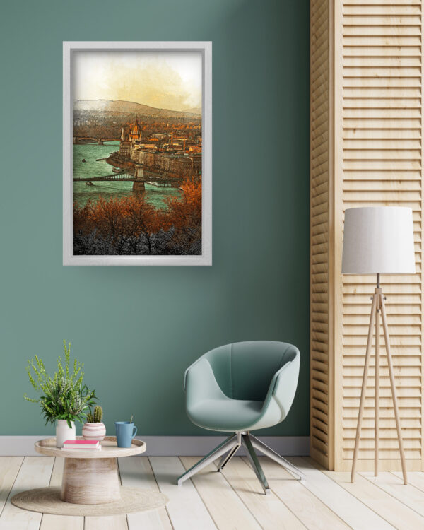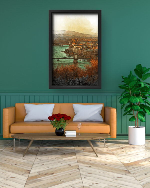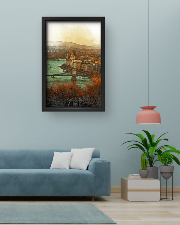 This stunning art piece captures the charm and elegance of Budapest, presenting a vintage-inspired cityscape with rich hues of orange, teal, and brown. The soft sketch-like effect blends modern digital techniques with traditional artistry, offering a timeless appeal. Whether you’re a travel enthusiast, architecture lover, or someone who appreciates fine art, this piece adds sophistication and warmth to any space. Printed on high-quality canvas, it ensures lasting vibrancy and exquisite detail, making it a perfect addition to your home or office decor.
