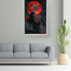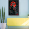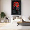 “Crimson Eclipse” is a bold and dramatic anime-inspired artwork featuring a white-haired character perched on a rooftop under a blood-red moon. With piercing red eyes and a fierce expression, she commands attention, blending elegance and danger. The fiery lunar backdrop intensifies the mood, making this piece a powerful addition to any modern, edgy, or fantasy-themed space.