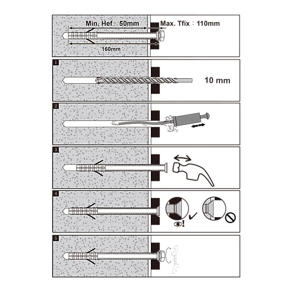 These Diall Hex Frame Fixings (10mm x 160mm) provide a secure and professional solution for installing uPVC, timber, and metal window and door frames. Designed for use in solid materials like concrete, blockwork, brickwork, and stone, these fixings ensure a clean and reliable finish for a variety of projects. Their winged design increases friction for superior hold.