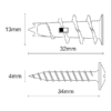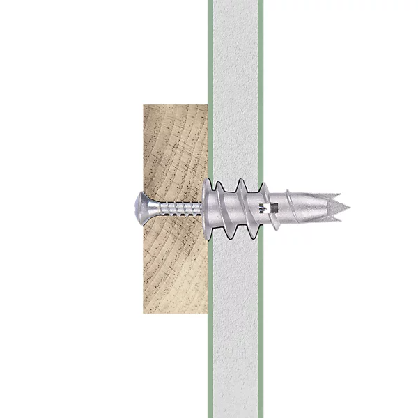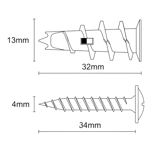 These Diall PZ Wafer plasterboard fixings (13mm x 32mm) in a pack of 25 offer a quick, convenient solution for secure fixings in plasterboard without the need for drilling. Ideal for light-duty installations, these self-drill fixings are perfect for mounting electrical sockets, light switches, picture frames, lightweight bathroom accessories, and timber or metal battens. Designed for use in both single and double thickness plasterboard, the flange prevents accidental push-through, ensuring a stable hold.