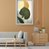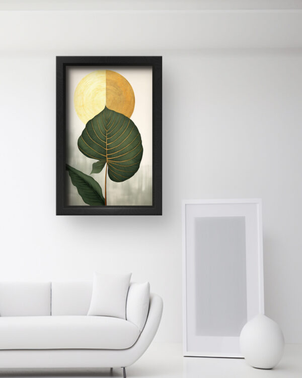Golden Leaf Harmony Wall Art brings a sense of balance and serenity to your home. Featuring a rich green leaf with delicate golden veins, set against a soft neutral background and a radiant golden sun, this piece embodies the beauty of nature with a modern, minimalist touch.