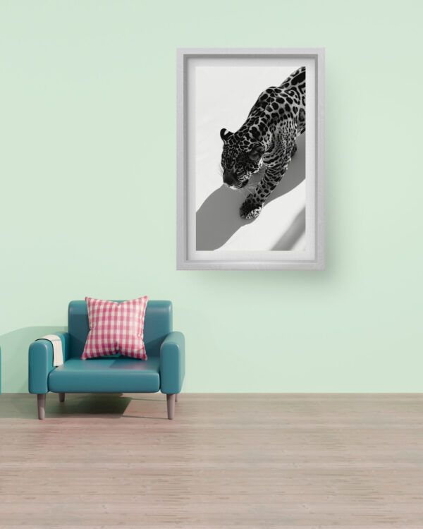 Silent Prowler is an artistic masterpiece showcasing the grace and intensity of a jaguar in motion. The monochromatic design enhances the contrast between the jaguar’s intricate patterns and the stark background, emphasizing its strength and stealth. This captivating piece is perfect for modern interiors, bringing a bold and sophisticated touch to any space. Ideal for animal lovers, art enthusiasts, and those who appreciate powerful imagery.